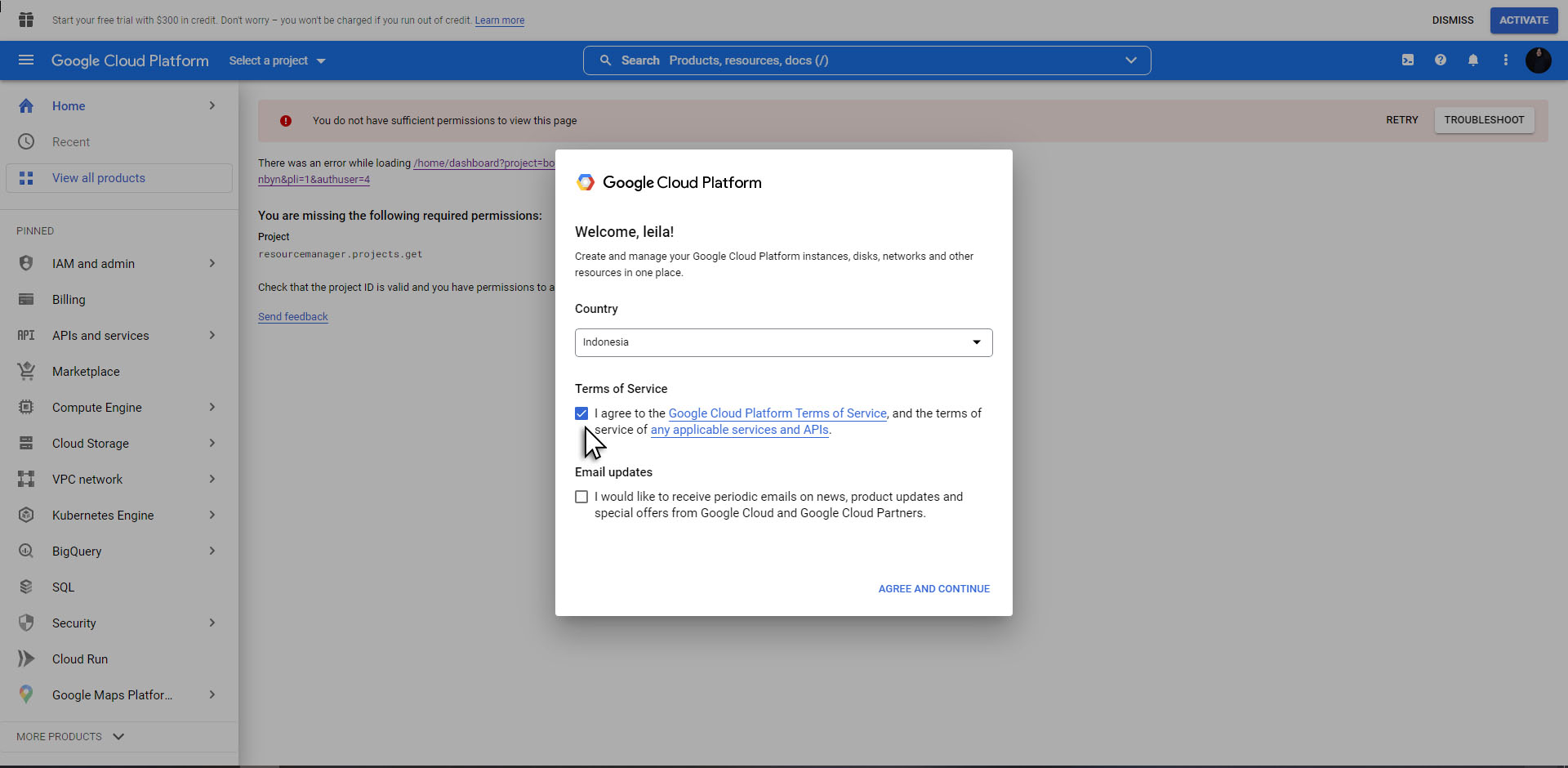 - Accept Google Cloud Platform Terms of Service (ToS).