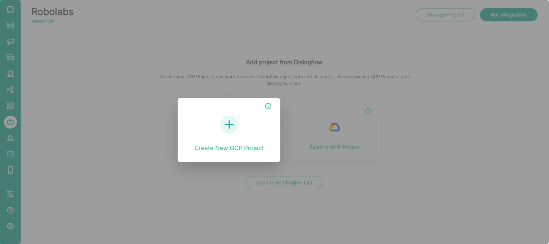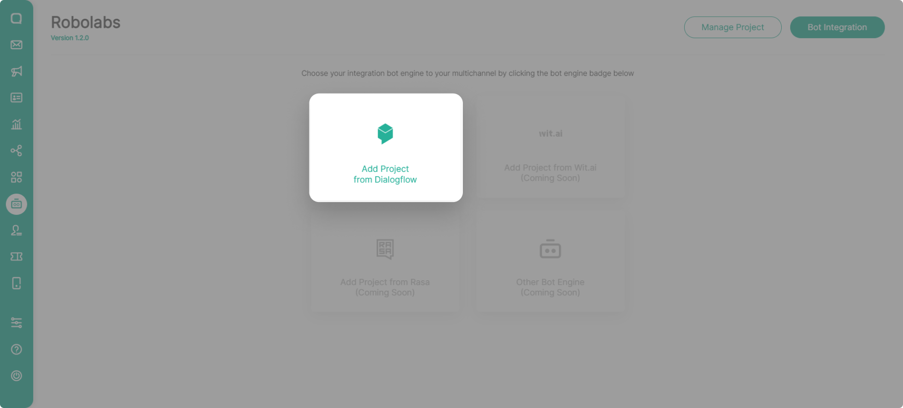 - Click "Bot Integration" and select "Add Project from Dialogflow".
