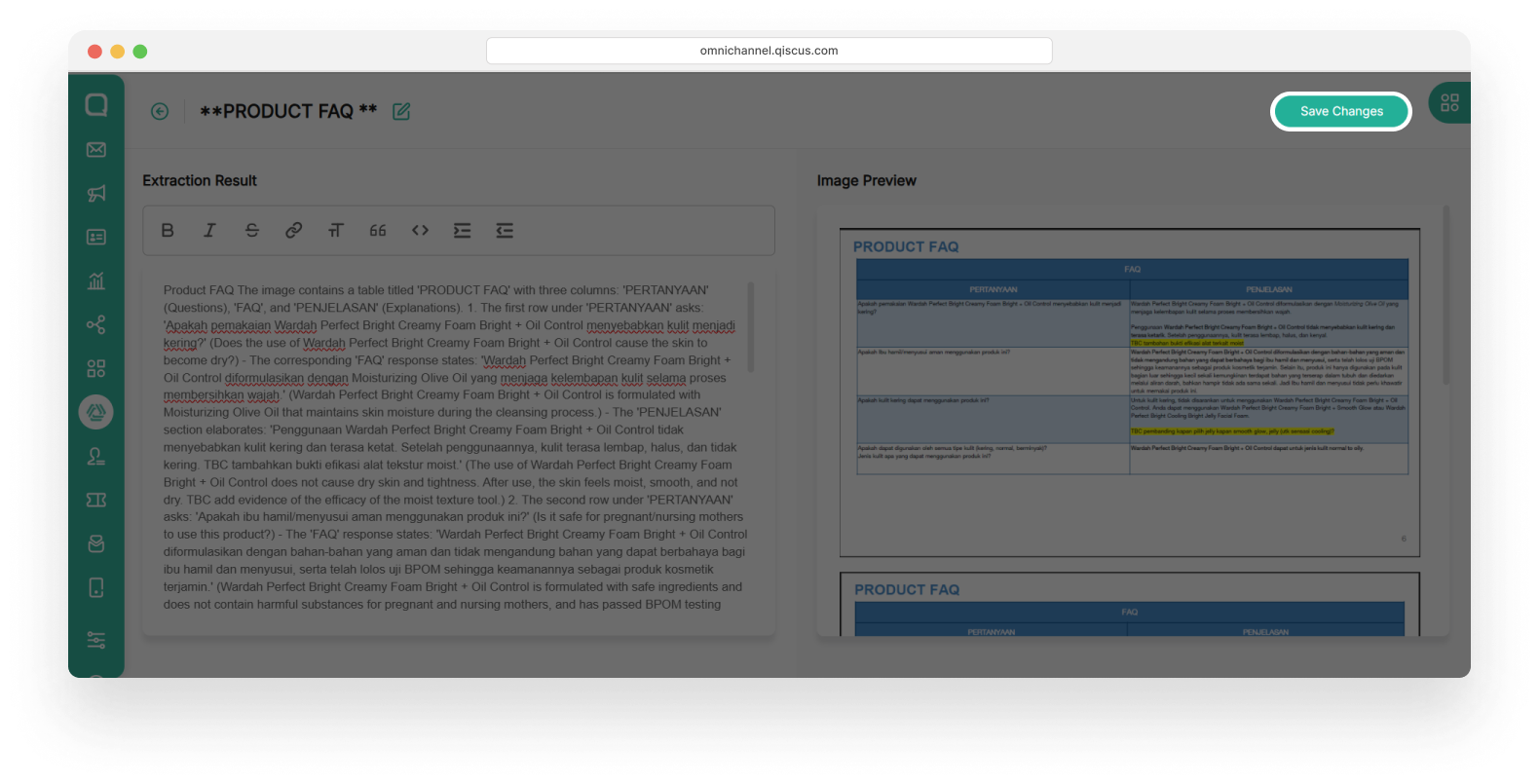 If the data exists but the response is inaccurate, you can easily edit the content in the Knowledge Base to improve future responses and maintain the reliability of your AI Agent. Then click Save Changes