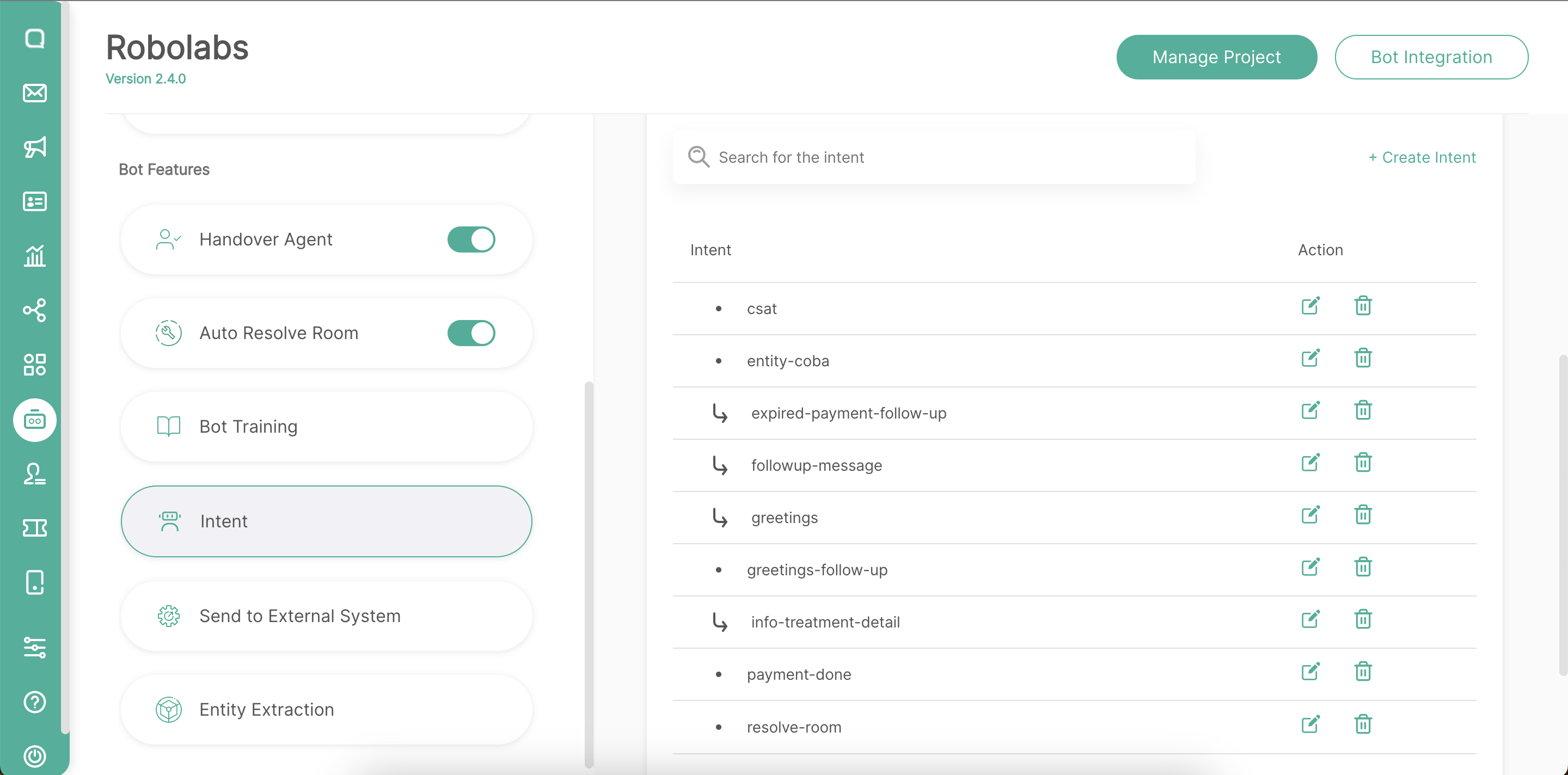 Go to Robolabs, then click Intent menu and select one of the intents.