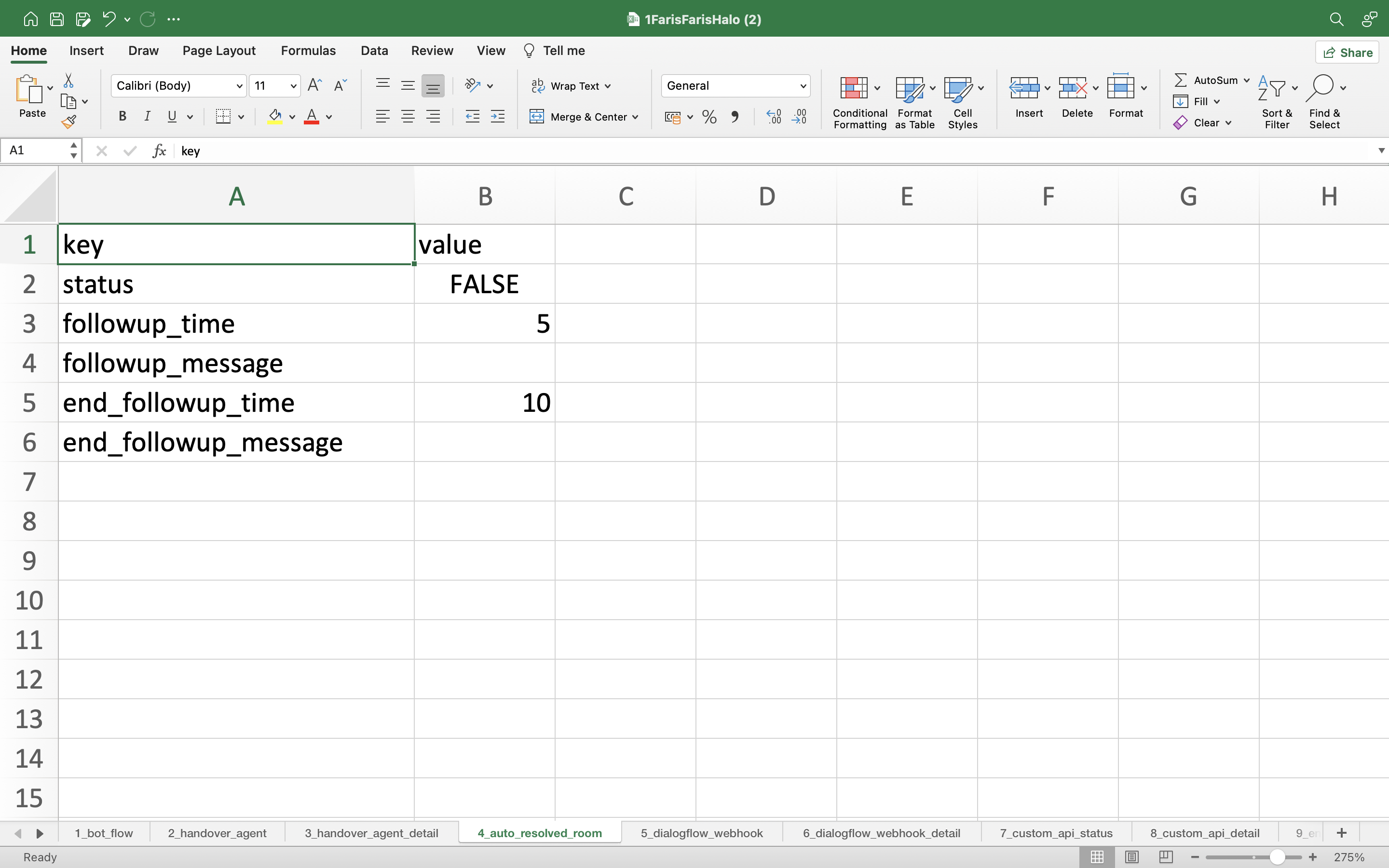 - status: You can activate the Handover Agent feature in this sheet, select TRUE to activate and select FALSE to deactivate.