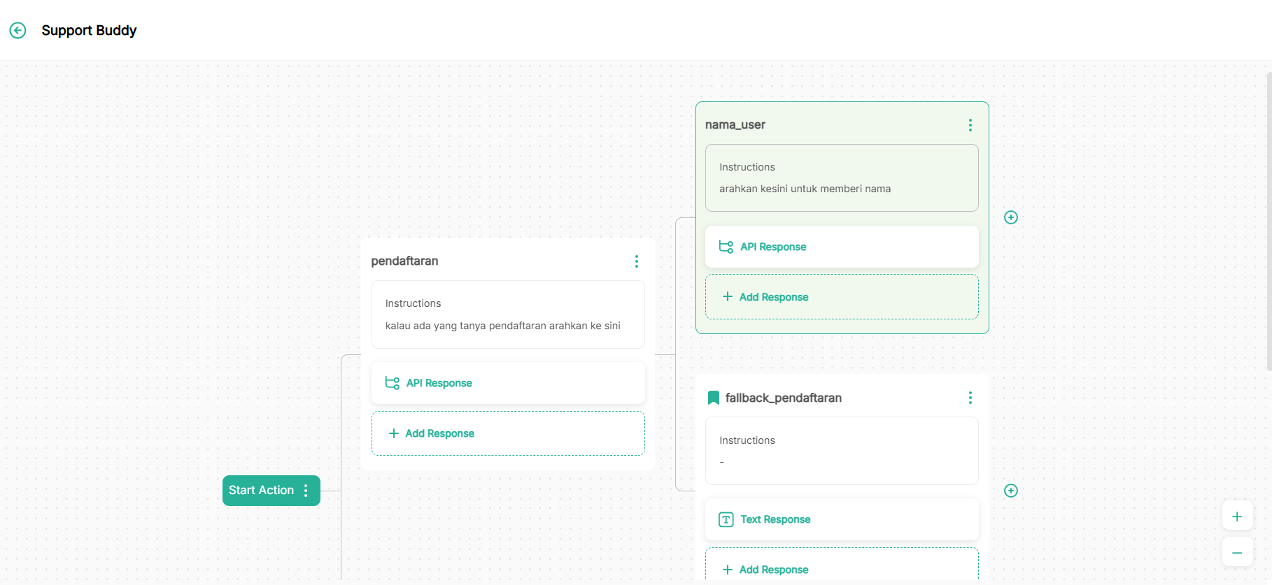 For example, suppose there’s an intent called "pendaftaran" which contains the rules for user registration like mentioned the user's name.