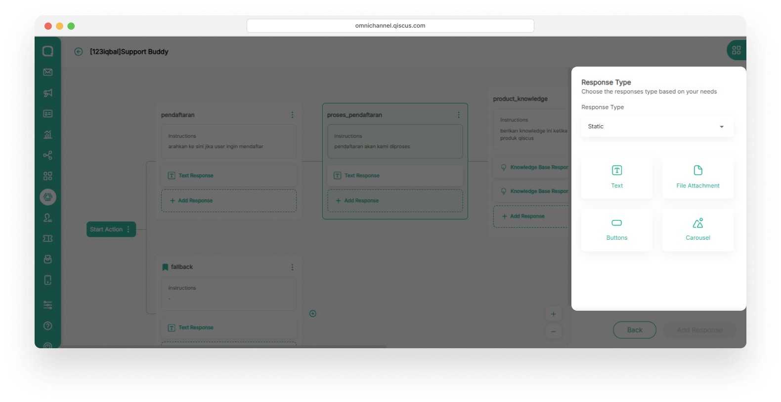 - Carousel (Only available for channel FBM, Line, Telegram, and Qiscus Widget)
