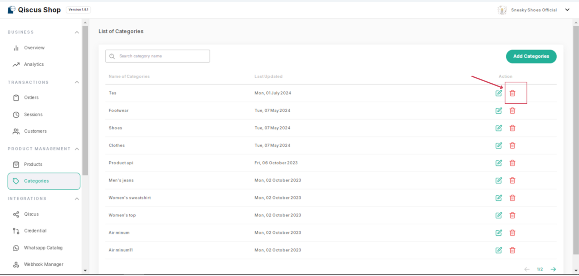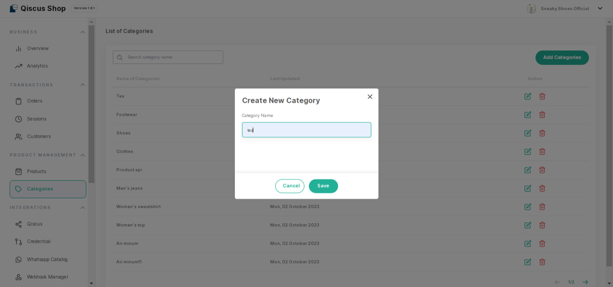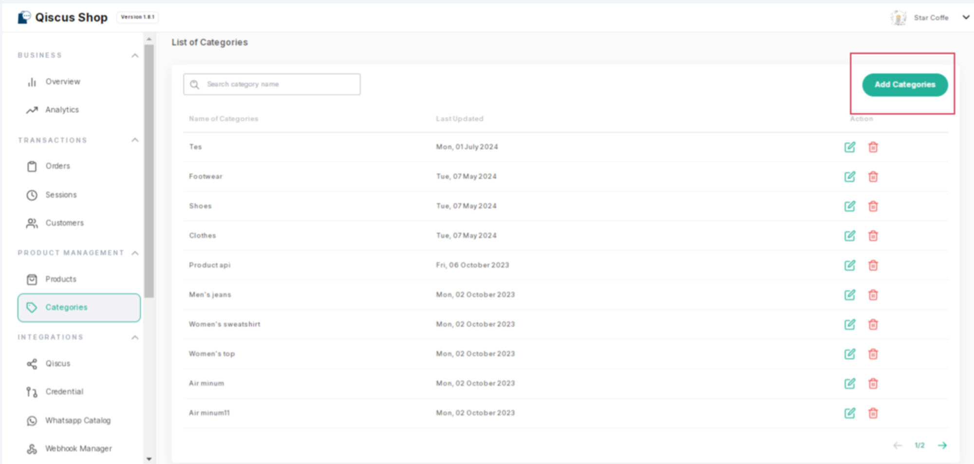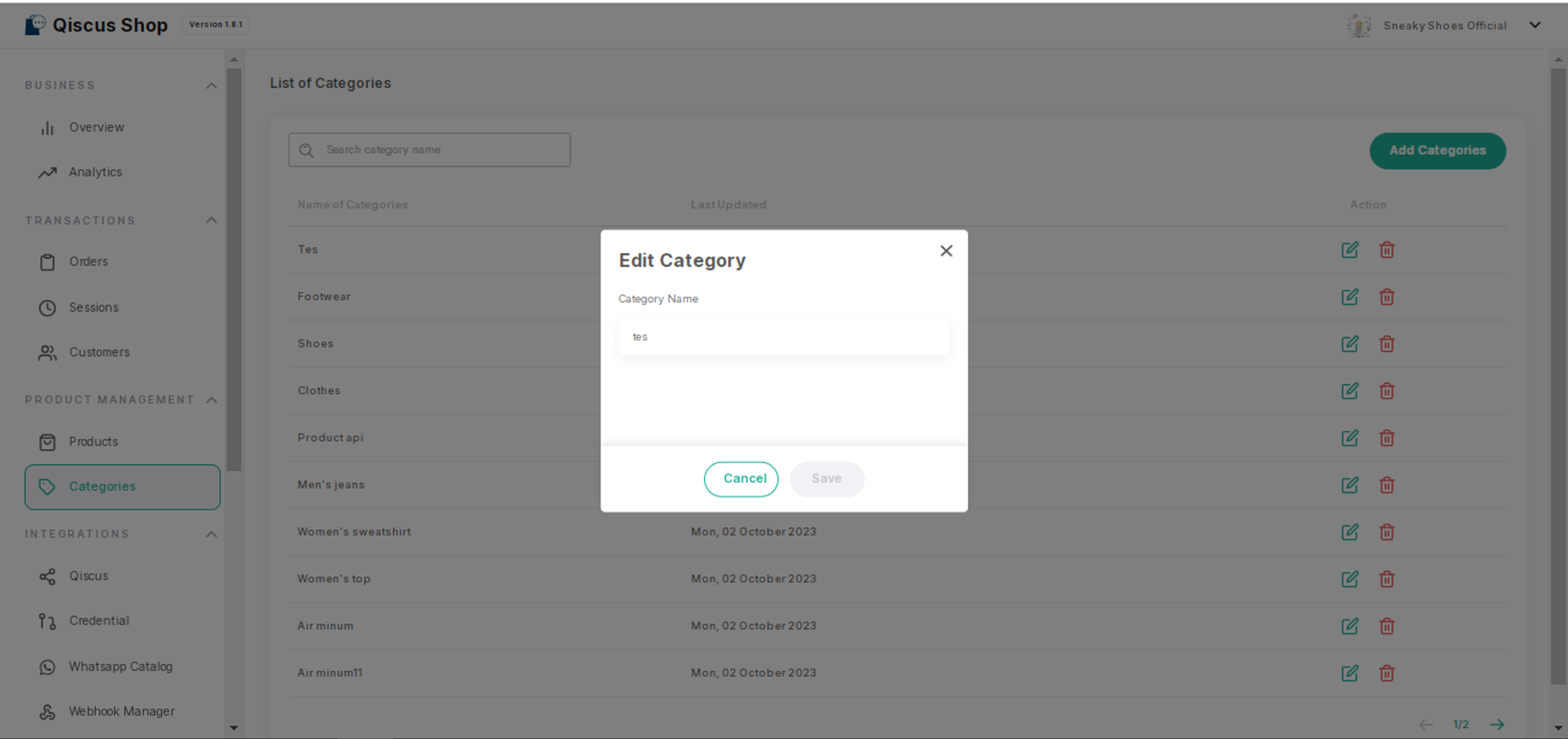 Select the category you wish to modify and click on the "Edit" button. You can then update the category name. After making the necessary changes, save your updates to ensure they reflect in your store.