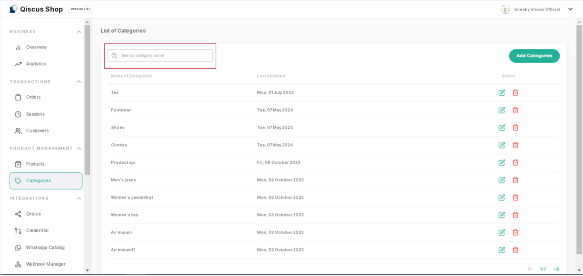 Enhance your store’s organization with our category management capabilities. This section provides detailed guides on how to search for existing categories, as well as instructions for creating and editing categories to keep your product listings streamlined and accessible. These feature are designed to help you efficiently manage your store’s structure, making product discovery simpler and more intuitive for your customers.