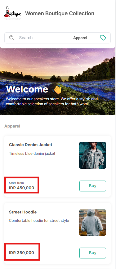 - Prices displayed in the store’s active currency