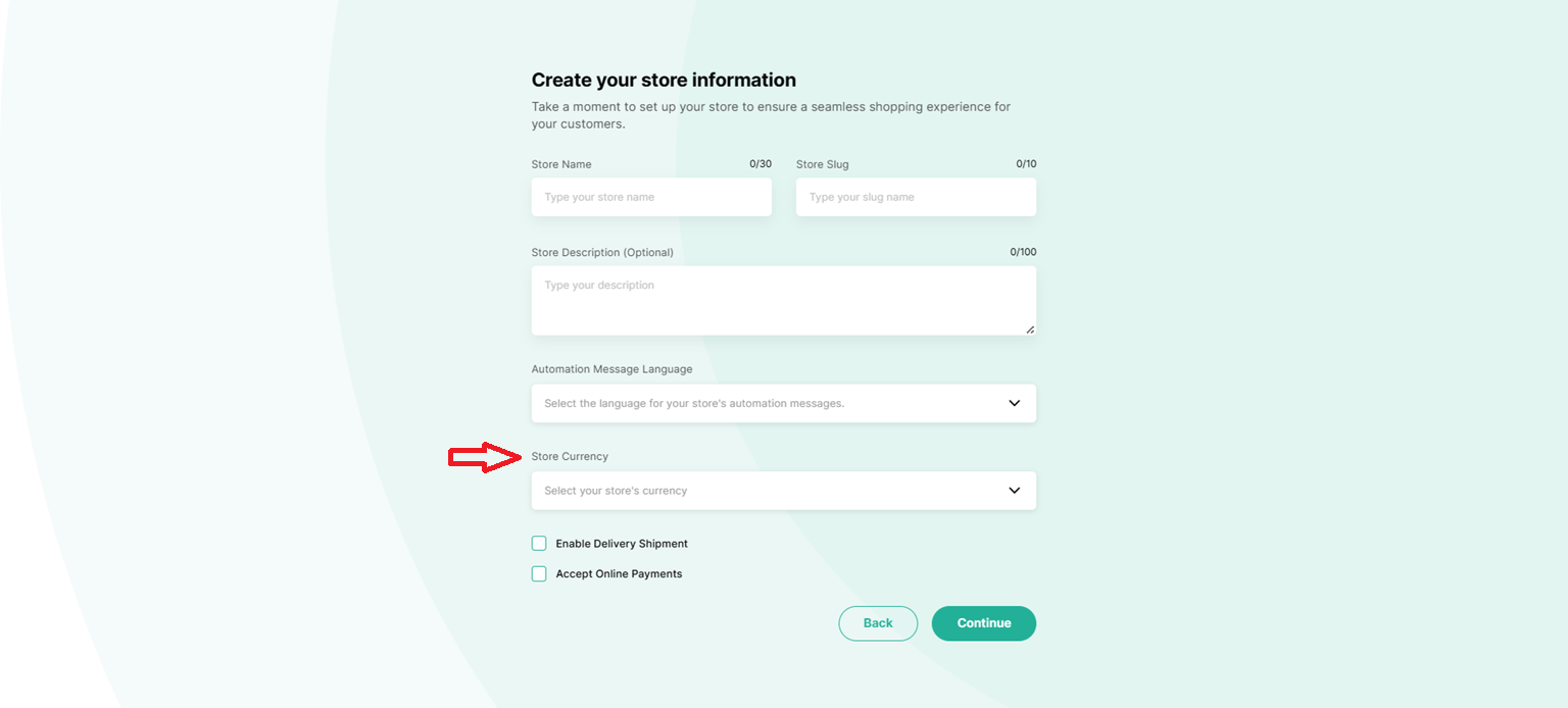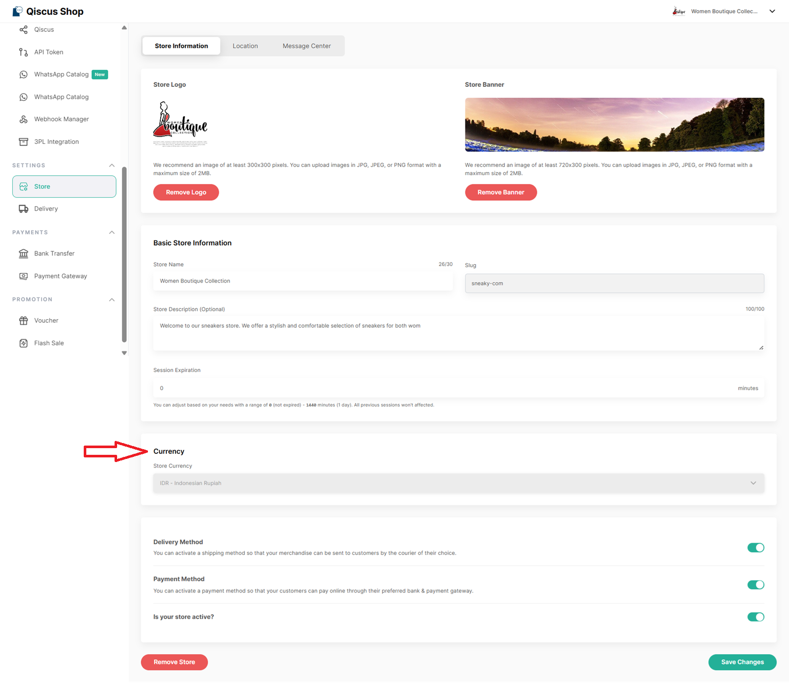 The selected store currency determines which payment providers are available in Qiscus Shop.