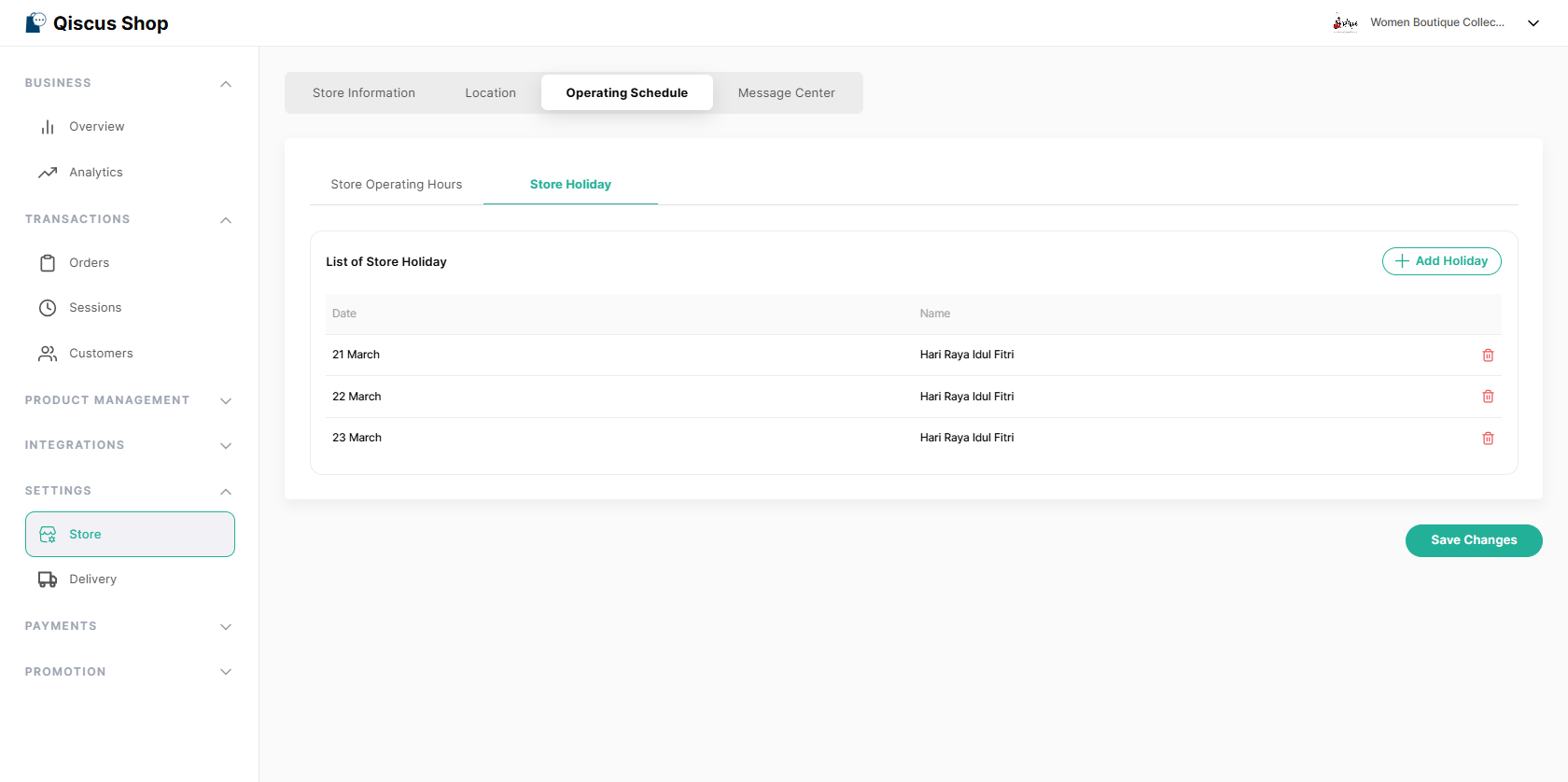 Store Holidays allow you to mark specific dates when your store is closed, even if your store is usually open on those days.